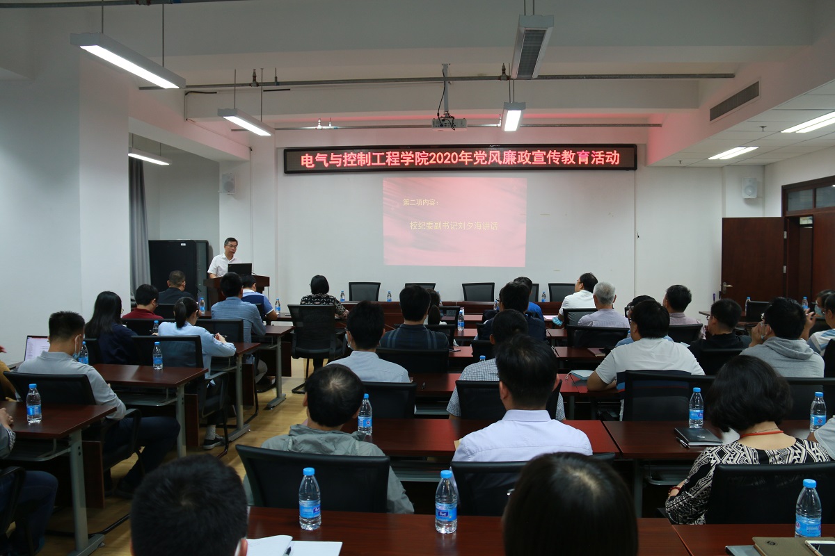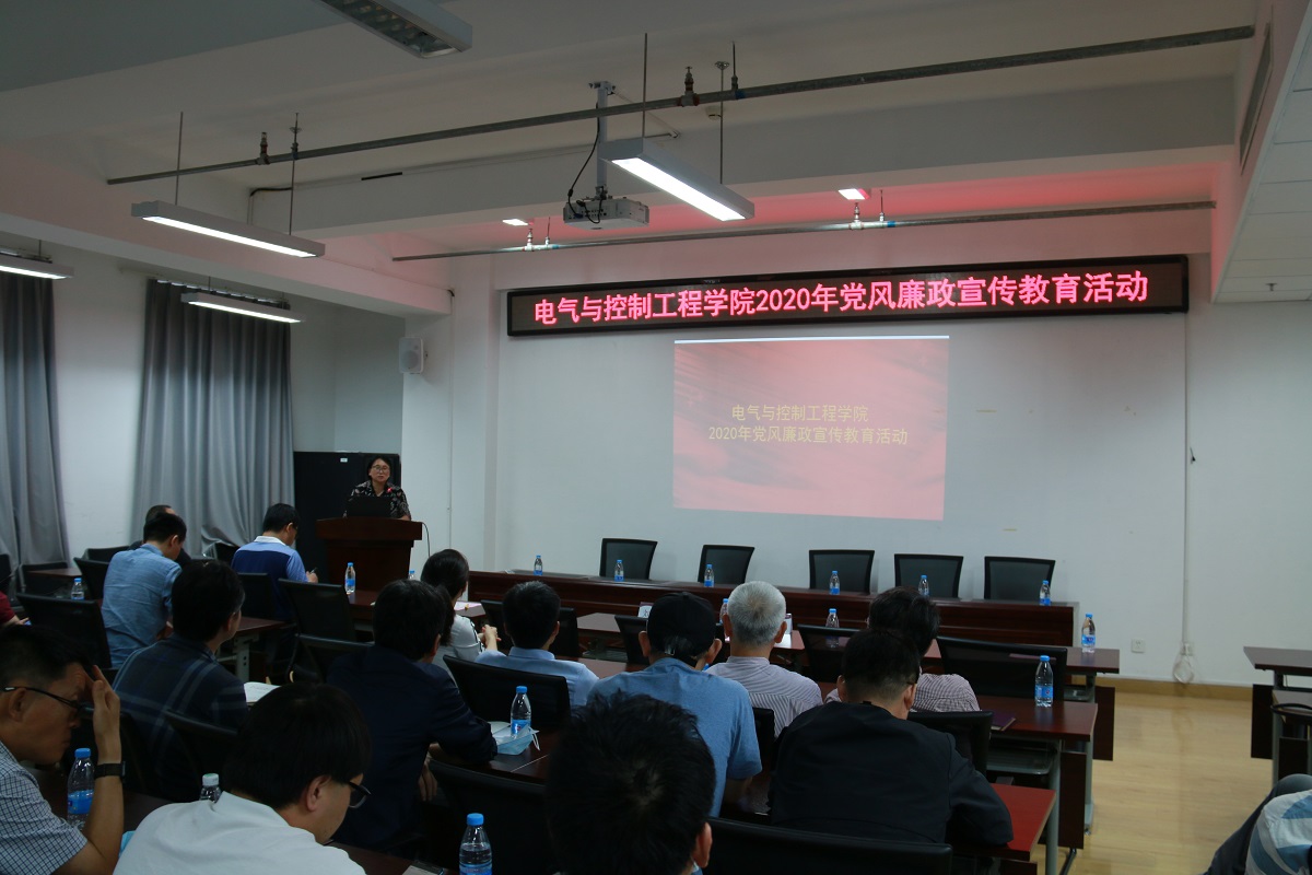 9月28日,电气与控制工程学院在博远楼452举办党风廉政宣传教育活动。校纪委副书记刘夕海、校纪委委员张建国、学院班子成员及全体教师党员、骨干教师参加活动。会议由学院党委纪检委员周京华主持。