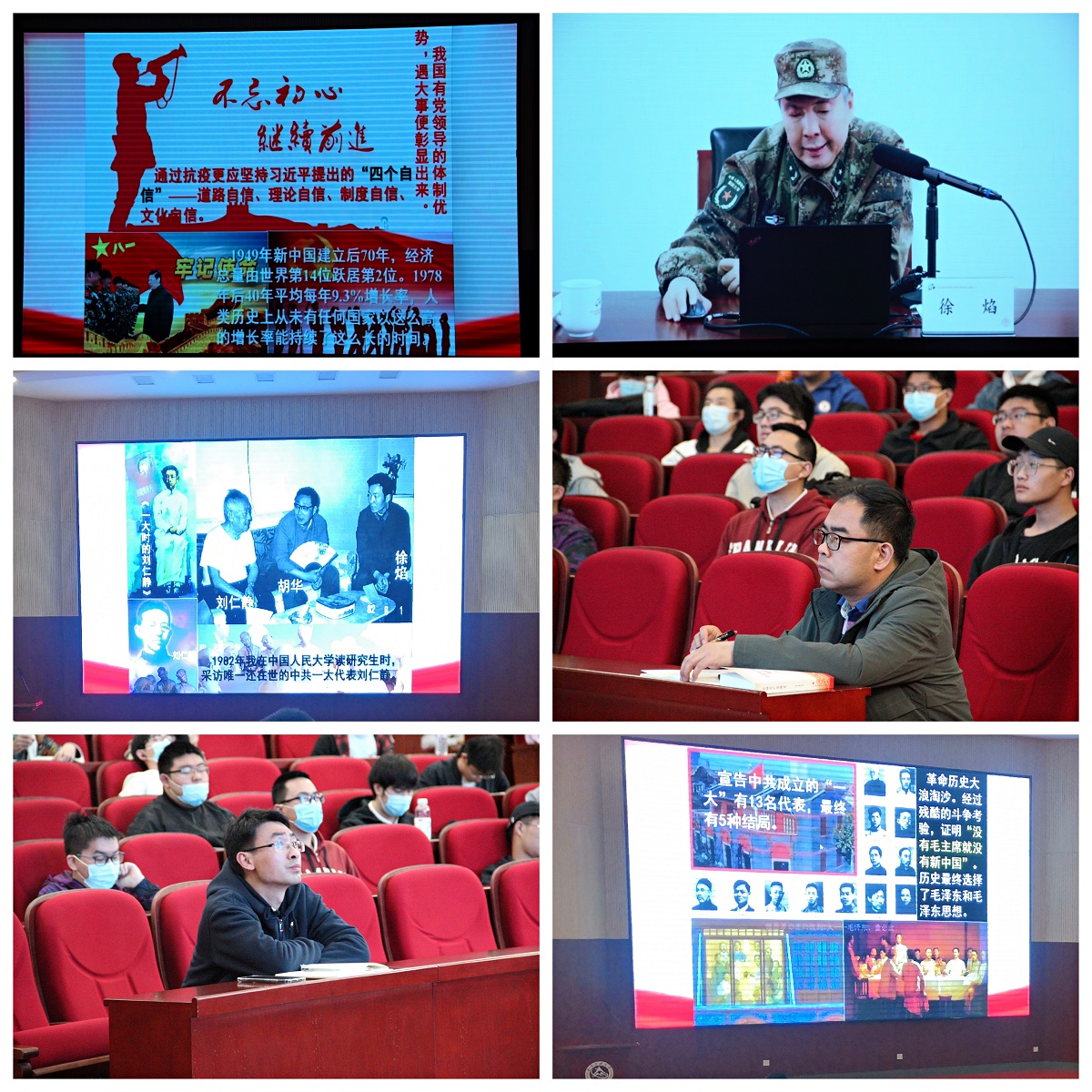 徐教授运用丰富的案例和史料,系统梳理了中国共产党及人民军队的奋斗历程,深入解读了中国共产党自建党以来经历的重大事件,通过数据对比展示了改革开放以来中国在经济发展、人民生活水平、武器装备等方面取得的成绩和进步,提出“群众路线就是中国最大的红色基因”等。徐教授的授课内容详实、深入浅出、发人深思、催人奋进、令人回味,在我院师生中引发热烈反响。同学们纷纷表示,作为一名新时代的大学生,要通过学党史、悟思想,不断提高自己的思想认识和理论水平,努力做到学史明理、学史增信、学史崇德、学史力行,从革命前辈手中接过历史的接力棒,努力成长为能够担当民族复兴大任的时代新人。