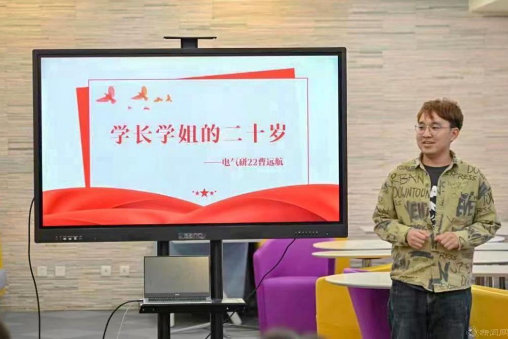 在学长学姐的二十岁分享中,电气研22曹远航同学分享了自己二十岁的故事。与会同学认真听讲,从优秀学长身上汲取宝贵经验,尽早确立目标、找准方向、努力奋斗,保持改革创新的锐气,锻炼实干担当的本领,争做有理想、敢担当、能吃苦、肯奋斗的新时代好青年。