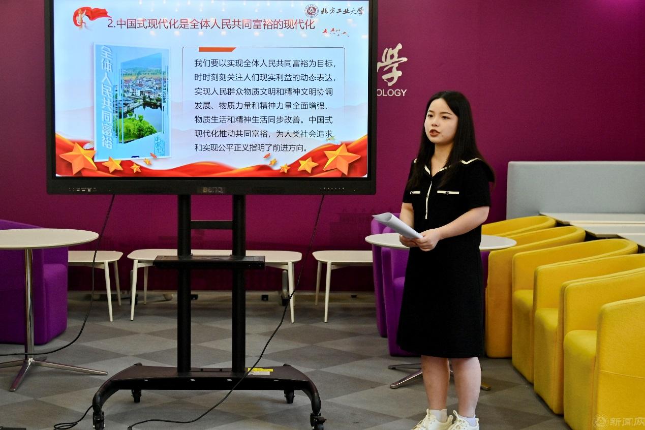 方苧慧同学以“青春为中国式现代化挺膺担当”为主题,带领大家共同学习贯穿党的二十大报告全篇的一个关键词——中国式现代化。了解中国式现代化的理论来源、五个特征,引导同学准确理解、科学领悟中国式现代化的科学内涵。党的二十大报告擘画了全面建成社会主义现代化强国的宏伟蓝图和实践路径,这正是青年人成长和施展才干的舞台,这也需要青年朋友们一起共同奋斗来实现。