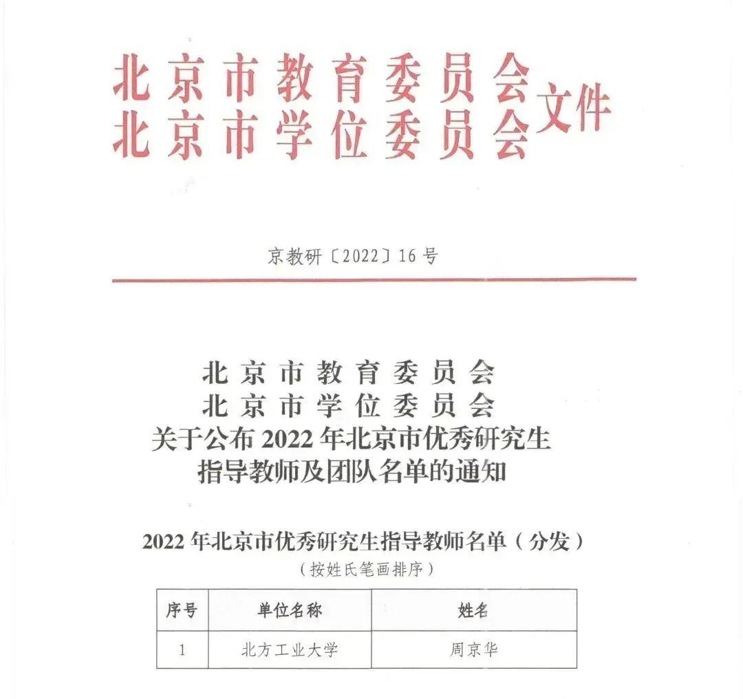 近日,北京市教育委员会、北京市学位委员会公布了2022年北京市优秀研究生指导教师及团队名单,我校电气与控制工程学院周京华教授获评“优秀研究生指导教师”。