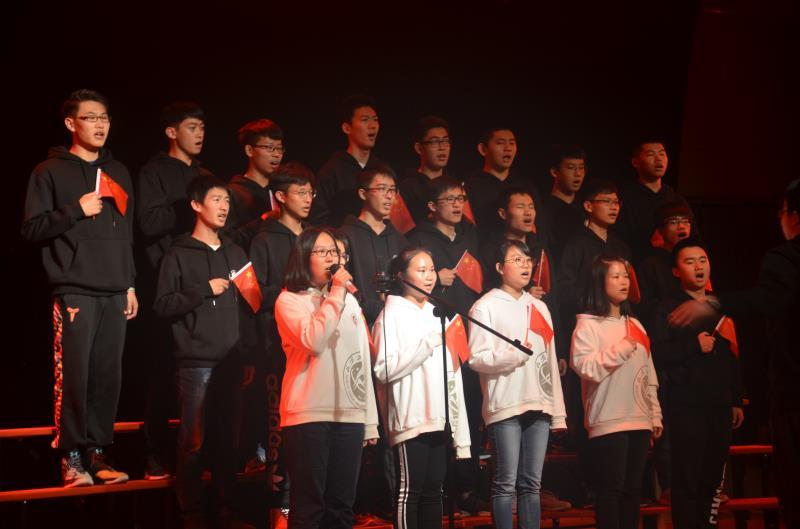 《歌唱祖国》、《没有共产党就没有新中国》、《黄河大合唱》等经典红歌共庆十九大的胜利召开,赢得现场师生的热烈掌声