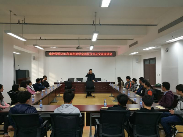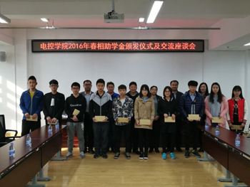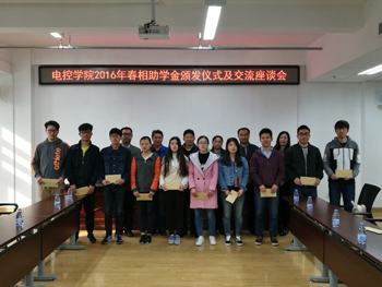 日前,电气与控制工程学院在博远楼452举行2016年“春相助学金”颁发仪式,校友陶森先生为受助学生颁发助学金并进行座谈。