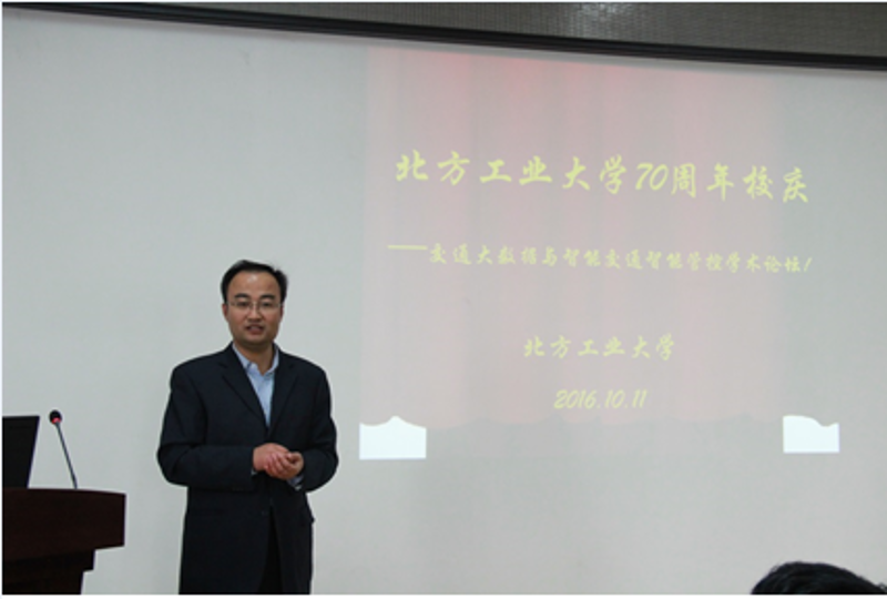 10月11日,电气与控制工程学院举办庆祝北方工业大学70周年华诞学术活动----交通大数据与智能交通智能管控学术论坛。论坛邀请北京市交通发展研究中心智能交通部实验室主任全于翔高工、神州优车股份有限公司首席架构师许开新博士、深圳北斗应用技术研究院副院长张瑞博士、中国电信云计算公司技术总监吴章先先生、北京晶众智慧交通科技股份有限公司副总裁教授级高工黄伟先生出席并做报告。同时论坛邀请北京市交管局马旭辉、范永强、沈辉,天津超算中心牛勇、张志勇等专家出席论坛。电气控制工程学院王力院长出席论坛并致辞,城市道路交通智能控制技术北京市重点实验室副主任张永忠等学院师生60余人参会。报告会由谭墍元博士主持。
