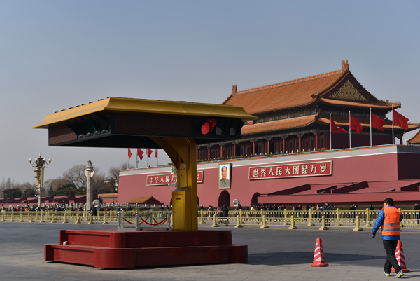 今年两会期间,为了保障长安街道路天安门区间的交通安全及交通畅通,北京 市交管局于3月初对天安门前东侧路及西侧路的岗亭进行了更换,岗亭内部核心智能交通控制设备采用我校“城市道路交通智能控制技术北京市重点实验室”自主研 发的交通信号控制器,我校智能交通团队相关技术人员作为技术备勤人员,很好的配合了北京市交管局等相关部门做好两会保障工作。上述工作的开展标志着我 校智能交通团队的产品研发能力和服务首都建设的技术应用水平又上一个新台阶。