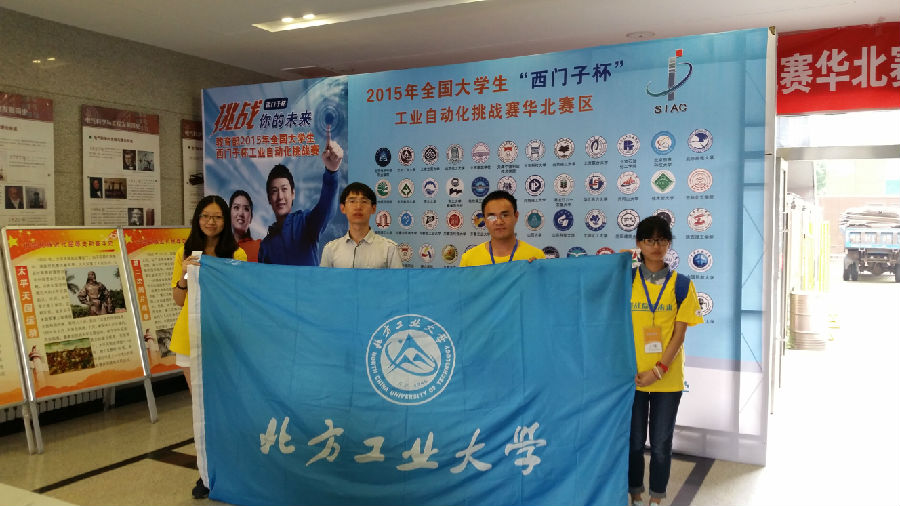 7月27-29日,由教育部高等学校自动化类专业教学指导分委员会、西门子(中国)有限公司和中国系统仿真学会联合主办的2015年全国大学生“西门子杯”工业自动化挑战赛华北赛区竞赛在北京交通大学隆重举行。由我校电气与控制工程学院李超老师指导,控制研13级胡光耀、电气13级兰馨蕊、方乐乐组成的 “NCUT科慧德”队从今年年初开始在学校和学院的大力支持下积极准备,反复优化完善,最终获得设计开发型赛项华北赛区一等奖,同时获得参加8月20日-22日全国总决赛的资格。