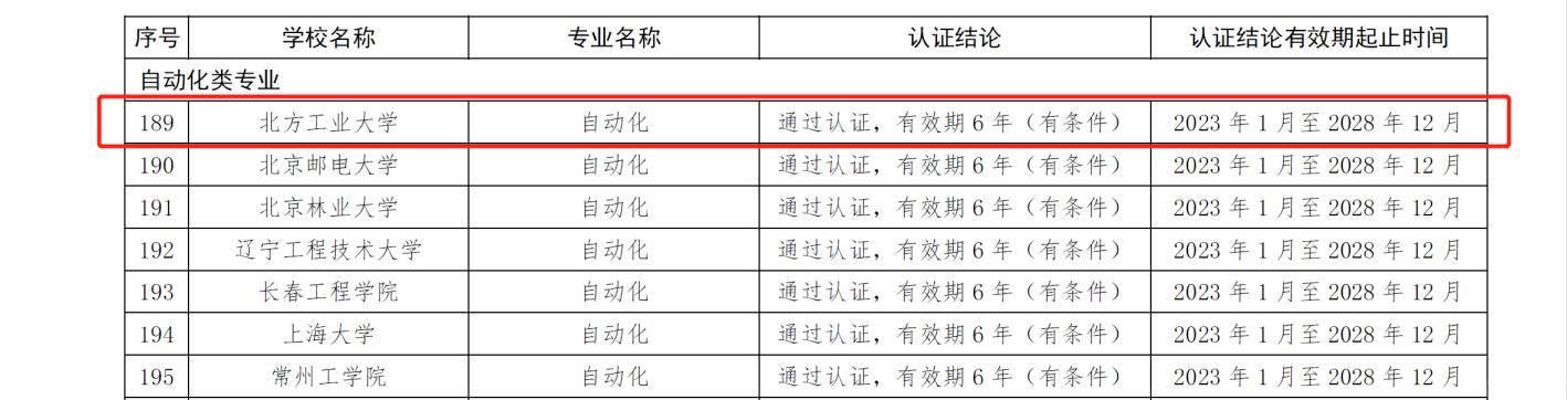 2022年,我校自动化专业完成了中国工程教育专业认证协会组织开展的学校自评、自评审核、专家组现场考查、结论审议等程序,依据《工程教育认证工作规范》(T/CEEAA 002-2022),经中国工程教育专业认证协会理事会审议批准:自动化专业通过认证,有效期6年(有条件),认证结论有效起止时间为2023年1月至2028年12月。