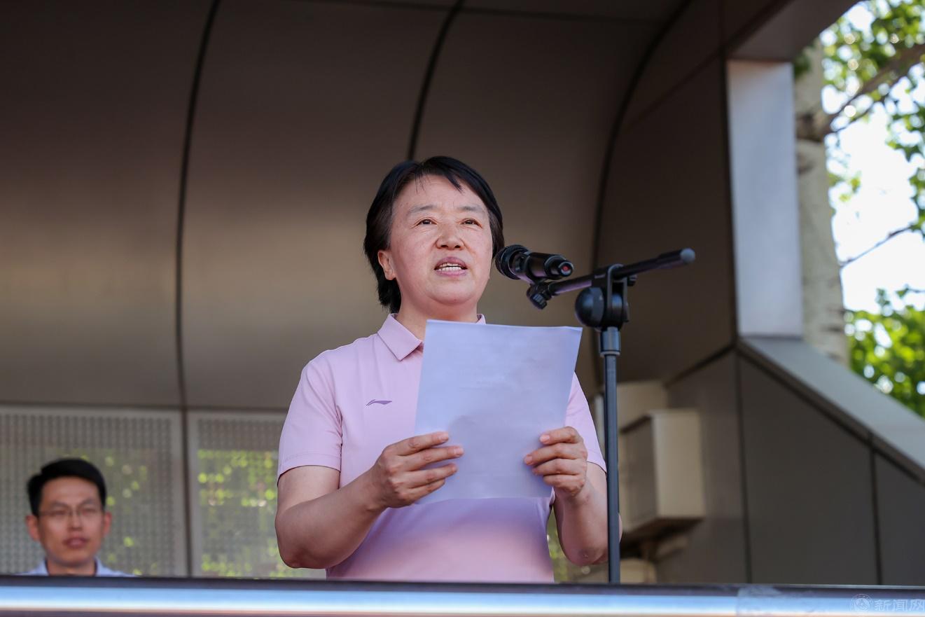 16时30分,赛程全部结束,运动会闭幕式在学校西操场举行。校领导田红芳、王建稳、栗苹、王力出席闭幕式,党委常委、副校长栗苹主持。