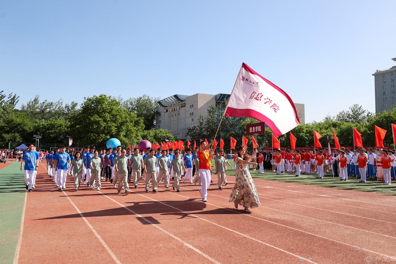 紧随教职工方队的是11个二级学院的运动员代表方队,各学院班子成员和教师代表走在方队前列,师生们衣着统一、精神饱满、口号嘹亮、斗志昂扬。