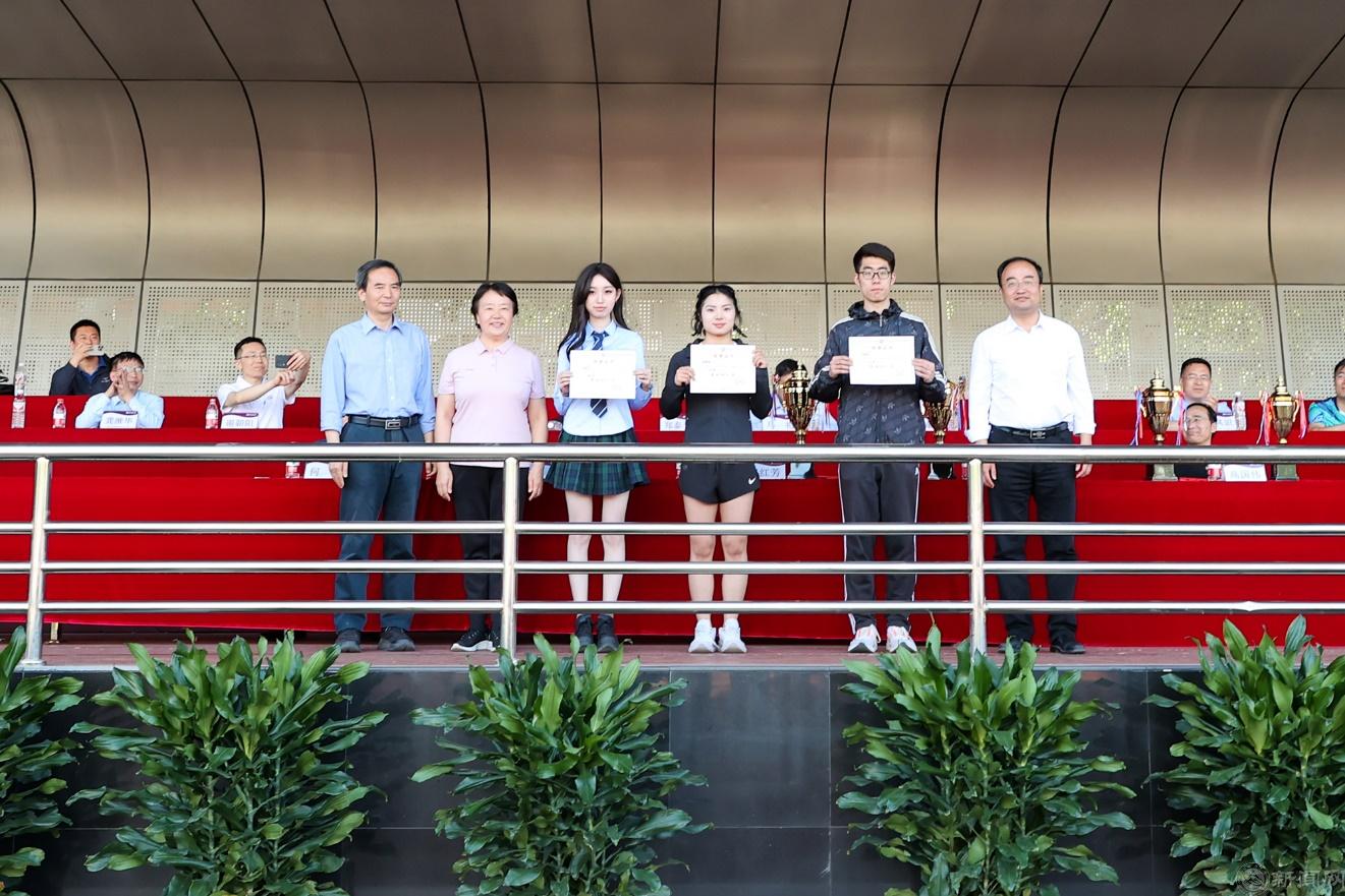 校领导为最佳方阵展示奖、最佳赛场宣传奖、最佳赛场组织奖获奖单位颁奖