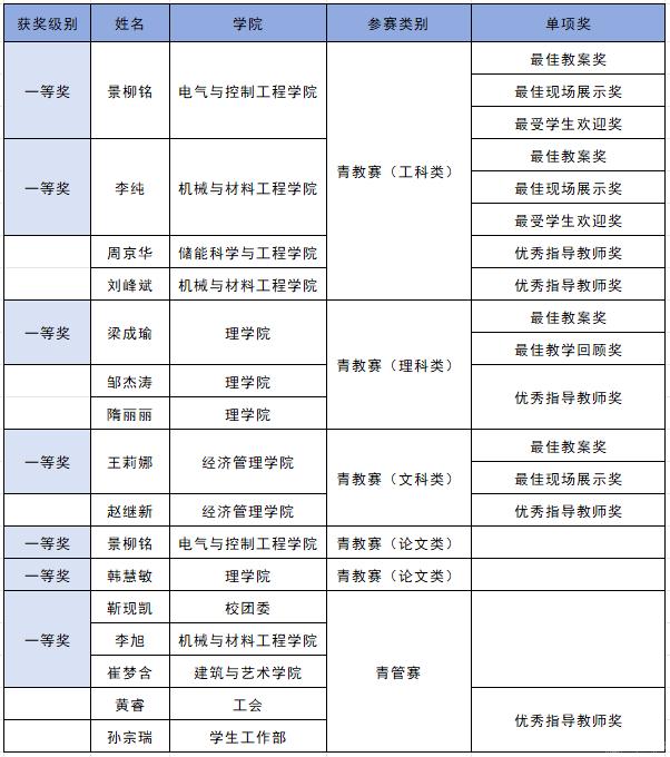 青教赛一等奖获奖教师:电气与控制工程学院景柳铭、机械与材料工程学院李纯