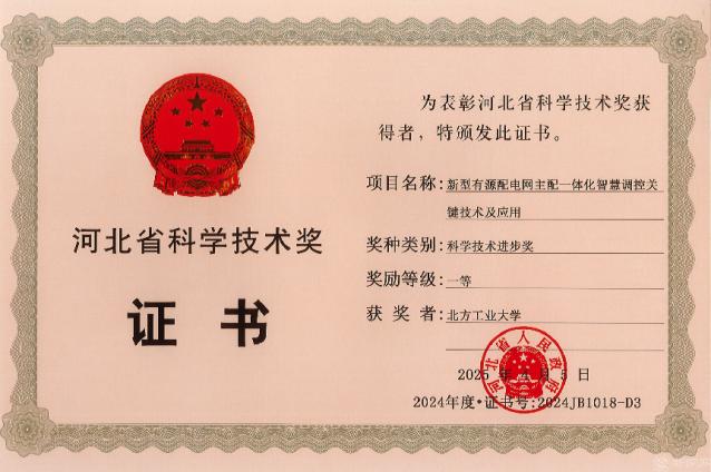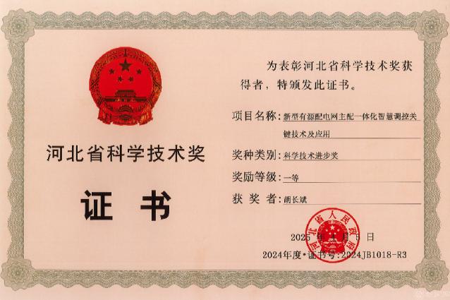 近日,河北省人民政府公布了2024年度河北省科学技术奖获奖名单,我校电气与控制工程学院胡长斌教授参与的“新型有源配电网主配一体化智慧调控关键技术及应用”获评河北省科学技术进步奖一等奖。