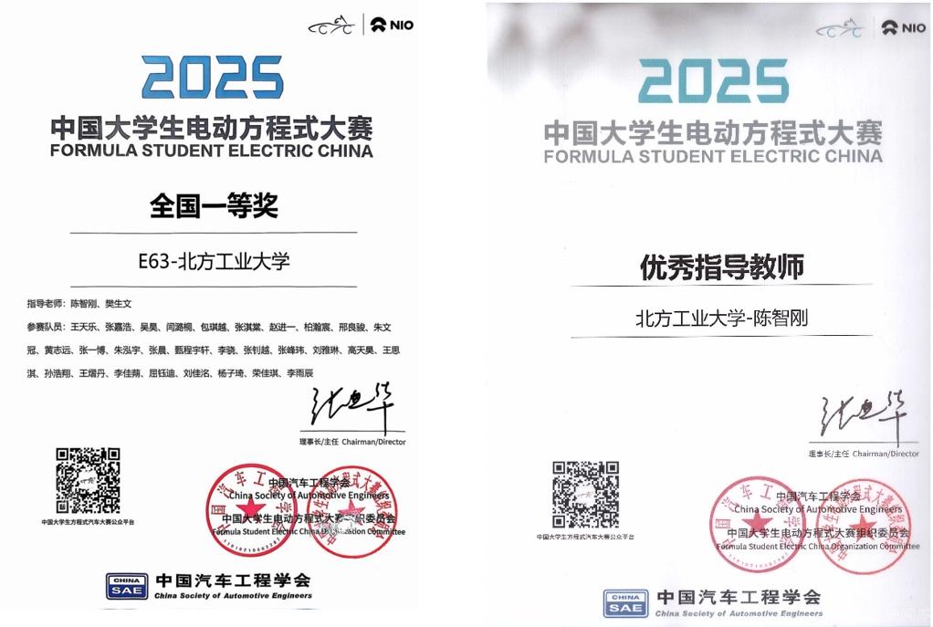 11月18日至23日,由中国科学技术协会指导、中国汽车工程学会主办的2025“蔚来杯”中国大学生方程式系列赛事在安徽合肥燃情开赛。我校在此次比赛中取得骄人成绩,获得电车总成绩全国一等奖、无人车全国三等奖,电车效率测试第五名、耐久比赛第十一名、成本与制造分析第十三名,A27无人车获评“最佳建图设计奖”,指导老师陈智刚获评“优秀指导老师”称号,用实力书写了北方工业大学在大学生汽车工程领域的亮眼答卷。