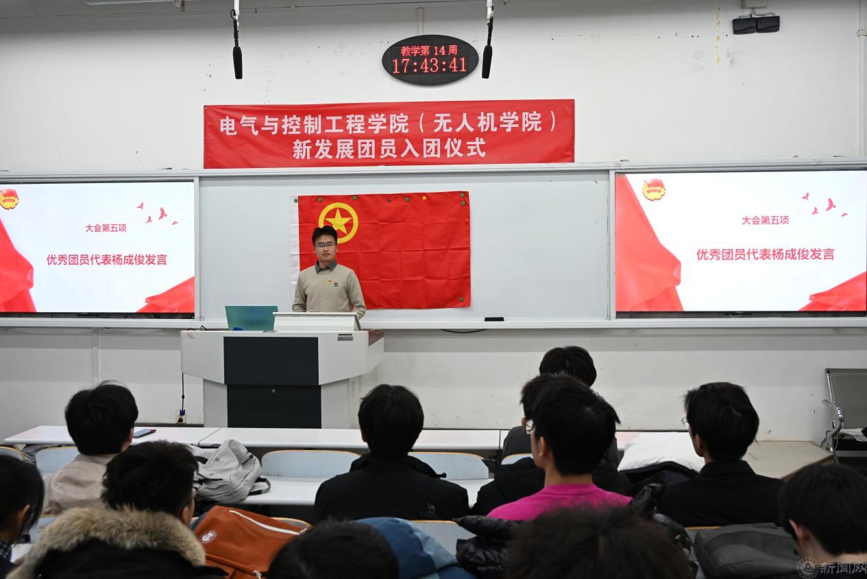 为促使新发展团员进一步明确新时代团员的责任义务,筑牢 “听党话、跟党走” 的思想根基,12月22日,电气与控制工程学院在瀚学楼0103举办2025年新发展团员入团仪式。学院团委副书记范玥、优秀团员代表杨成俊和55名新发展团员参加活动。