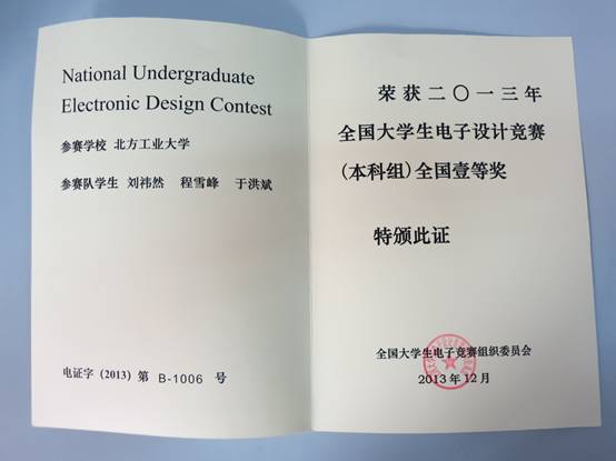 “面向需求,校企合作,科教结合,协同育人”——自动化国家级特色专业建设成果,2013年,北京市一等奖