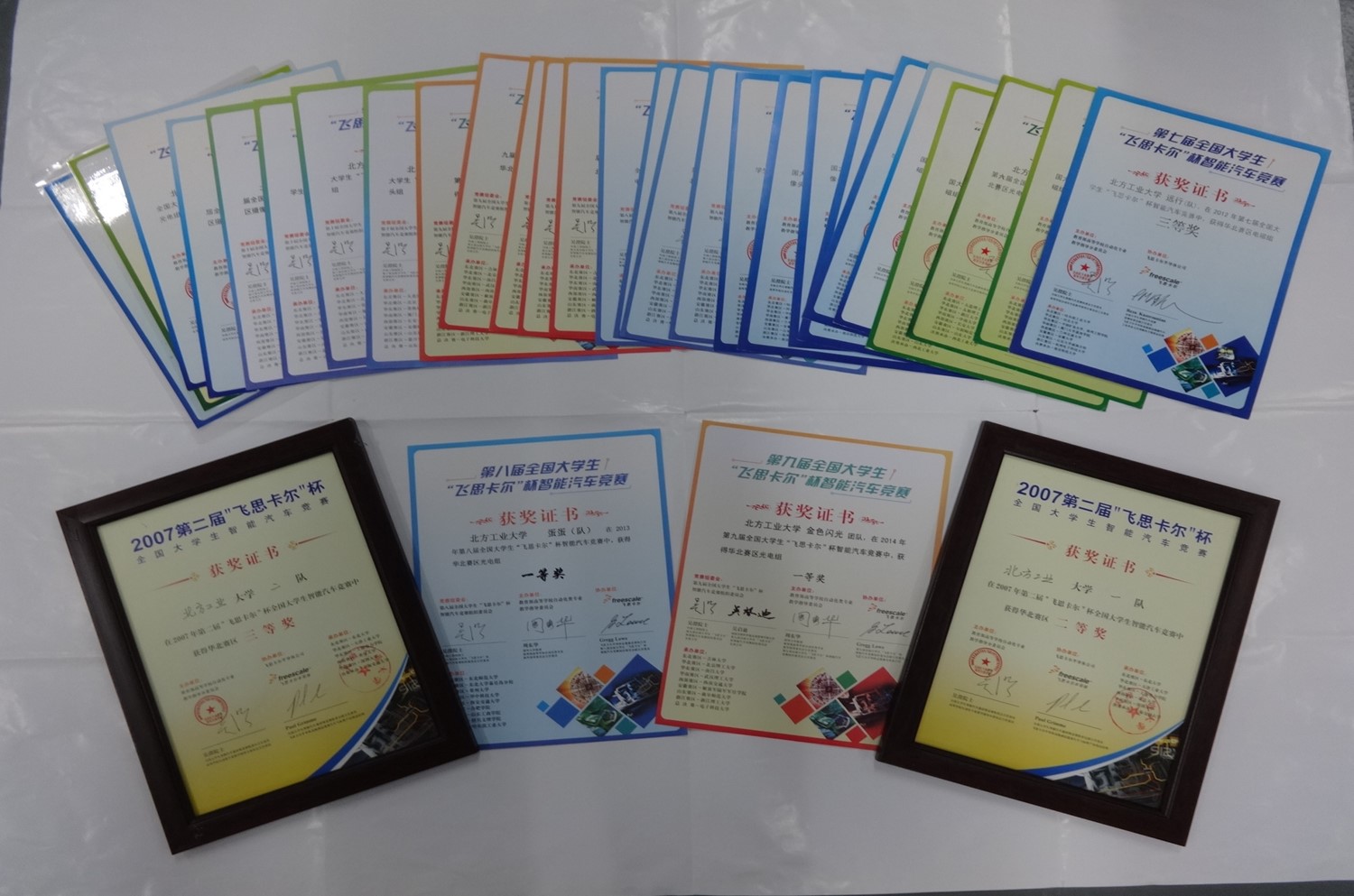 自控原理实验室多年来组织开展各项大学生科技竞赛活动。根据专业特点与科技发展方向,积极组织学生参加各级各类、多层次的学科竞赛,不断挖掘和培养学生个人特长、团队精神、创新意识和实践能力,自控原理实验室指导学生参加全国大学生电子设计大赛、智能车竞赛、挑战杯等科技竞赛,先后获得国家级、省部级奖励一百余项。