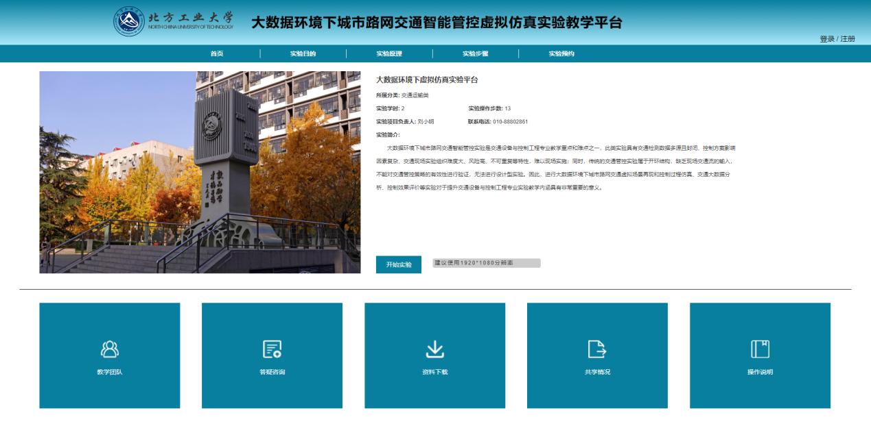 实验室建设了“大数据环境下城市路网交通智能管控虚拟仿真实验平台”,通过北京市教委遴选,在国家虚拟仿真实验教学平台上推广发布。在此平台上,推行了“课赛同步、赛教互动、赛学协同”的新型教学模式,将《交通管理与控制》的课程内容与信号调优、模型构建、数据分析等实际岗位需求相结合,并在疫情期间连续举办了三届互联网+交通信号干线协调配时线上比赛。