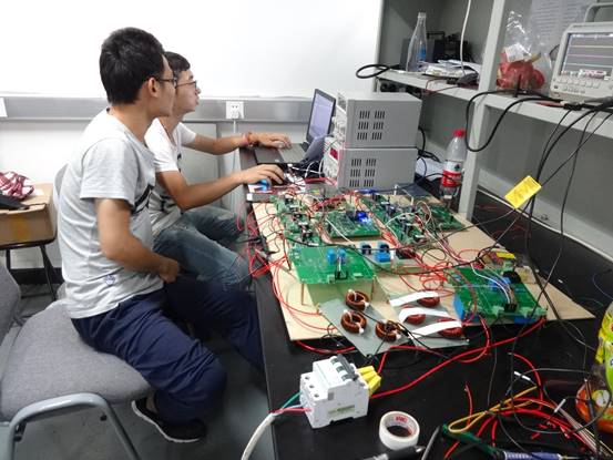 本项目为2017年全国大学生电子设计竞赛题,项目内容是当前新能源领域中的热点问题微电网系统,其中微电网中风力发电、太阳能发电、储能等由直流电源等效。根据题目设计并制作了两个三相并网逆变器组成的微电网模拟系统,实现了逆变器1对输出电压幅值和频率的准确控制,动态性能好,电压谐波小,效率高;同时完成了两台逆变器并联运行,并实现了输出功率在指定范围内的自动分配,两者的误差满足要求,达到了较好的效果。