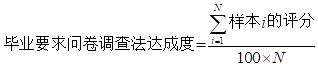学生毕业半年后内,“毕业生跟踪调查组”负责对毕业生本人和用人单位的各个毕业要求达成情况进行问卷调查,获取毕业生自评和用人单位评价数据。问卷按照5个等级设计(量化分别对应90分、80分、70分、60分和40分)。问卷评价结果根据如下公式分别计算: