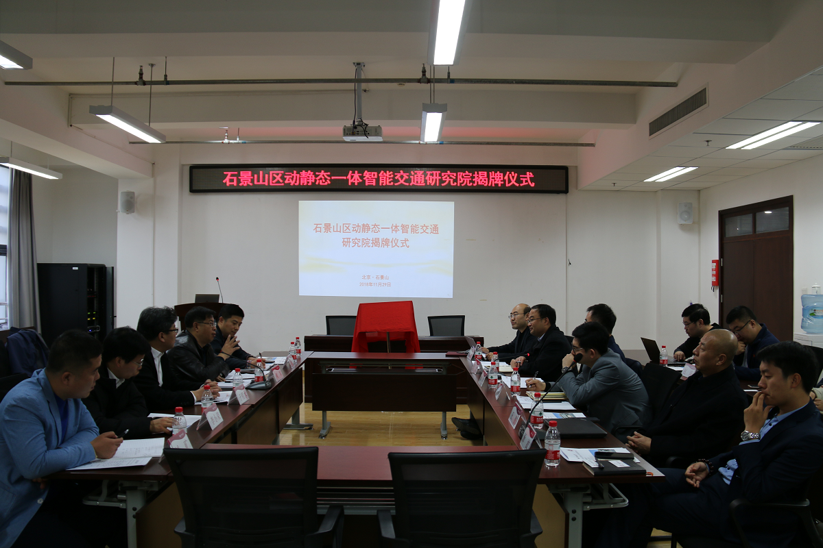 11月29日上午,“石景山区动静态一体智能交通研究院”成立暨揭牌仪式在博远楼452举行。石景山区交通委专职副主任柯军,石景山城市管理委员会交通综合科科长李亚利,北京中铁建建筑科技有限公司总经理于程水,酷停科技(北京)有限公司执行董事汤波,北方工业大学科技处副处长韩飞、电气与控制工程学院院长王力、电气与控制工程学院科研办公室主任董哲,yl6809永利线路检测相关团队教师学生代表参加了揭牌仪式。仪式由城市道路交通智能控制技术北京市重点实验室副主任、研究院院长张海波主持。