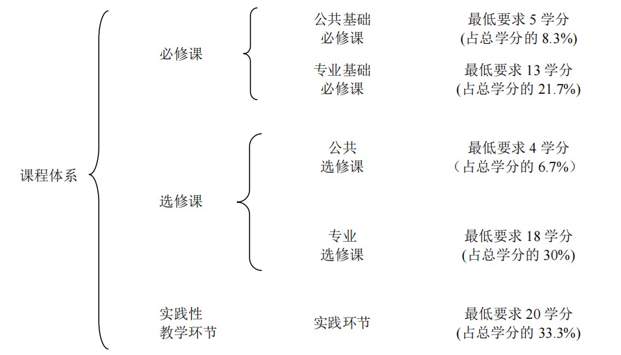 注:1.实践教学最低学分要求为 20 学分,选修课必须修满 1 学分。超出学分的部分计入专业选修课学分。